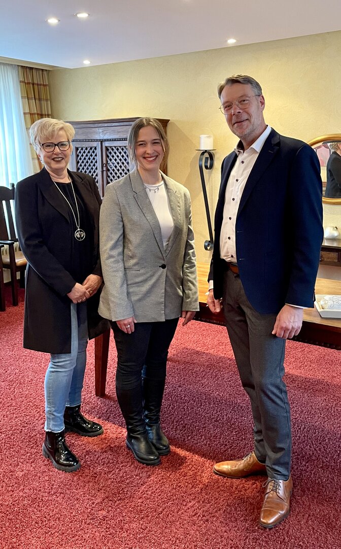 Marlene Zudeick StandesbeamtinFoto: Marlene Zudeick (mitte) wurde jüngst von Samtgemeindebürgermeister Henning Fricke (vorne) im Beisein von Ute Kießling (hinten) ernannt.© Samtgemeinde Zeven Anfang April wurde Marlene Zudeick zur Standesbeamtin der Samtgemeinde Zeven ernannt. Samtgemeindebürgermeister Henning Fricke überreichte hierzu Marlene Zudeick ihre Ernennungsurkunde und gratulierte ihr sehr herzlich. Marlene Zudeick hatte vorab die notwendige Weiterbildung zur Standesbeamtin mit Erfolg absolviert. Sie unterstützt von nun an das Team der fünf Standesbeamtinnen der Samtgemeinde Zeven. Neben Marlene Zudeick sind Alena Albers, Susanne Bluhm, Ute Kießling und Melanie Wischnewski als Standesbeamtinnen tätig. Stellvertretend nahm Ute Kießling sie in den Kreis ihrer Kolleginnen jüngst auf. Für Eheschließung/Trauung können in der Samtgemeinde Zeven das Rathaus, das Königin-Christinen-Haus, die Wassermühle Bademühlen, das Heimathaus Heeslingen oder auch das Haus Kreienhoop in Nartum gewählt werden.