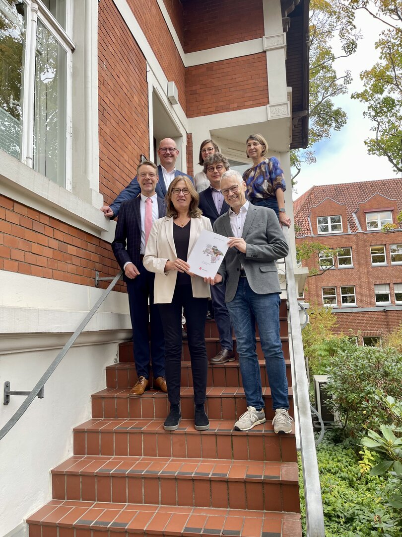 Karin Beckmann (ArL Lüneburg) überreicht die Mittelteilung zum Programmjahr 2025 der Stadt Zeven an Bürgermeister Jens Petersen und Stadtdirektor Henning Fricke© Stadt Zeven Der Stadt Zeven wurde die diesjährige Mitteilung zur Programmfortschreibung durch Karin Beckmann, Landesbeauftragte und Leiterin des Amtes für regionale Landesentwicklung Lüneburg, zum Städtebauförderungsprogramm „Wachstum und nachhaltige Erneuerung – Lebenswerte Quartiere gestalten“ für die städtebauliche Erneuerungsmaßnahme „Auf der Worth“ in Zeven überreicht. Mit den nun zugesagten Fördermitteln in Höhe von 1,5 Millionen Euro wird die Einzelmaßnahme „KuBiZ – Kultur- und Bildungszentrum Zeven“ weiter gefördert. "Die Städtebauförderung ist ein wichtiges Instrument, um Städte und Gemeinden zu unterstützen. Sie ermöglicht es, gezielt in die Infrastruktur, die Lebensqualität und die Attraktivität der Innenstädte und Ortskerne zu investieren. So schaffen wir gute Lebensbedingungen für die Menschen vor Ort und fördern eine nachhaltige Gestaltung, die den Bedürfnissen heutiger und zukünftiger Generationen gerecht wird. Ich freue mich daher sehr, heute der Samtgemeinde Zeven den Bescheid offiziell zu überreichen“,  so Karin Beckmann.