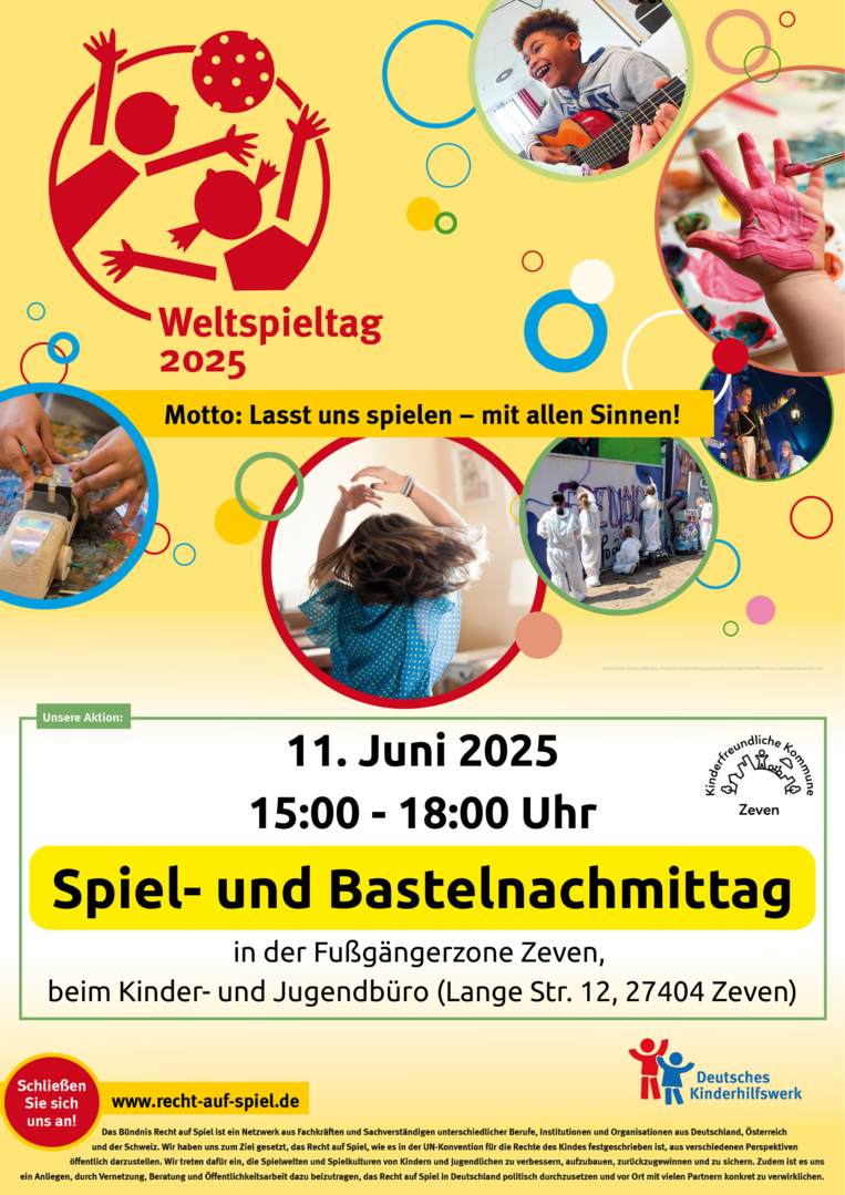 Bunter Spiel- und Bastelnachmittag zum Weltspieltag am 11.6. in Zevens Fußgängerzone